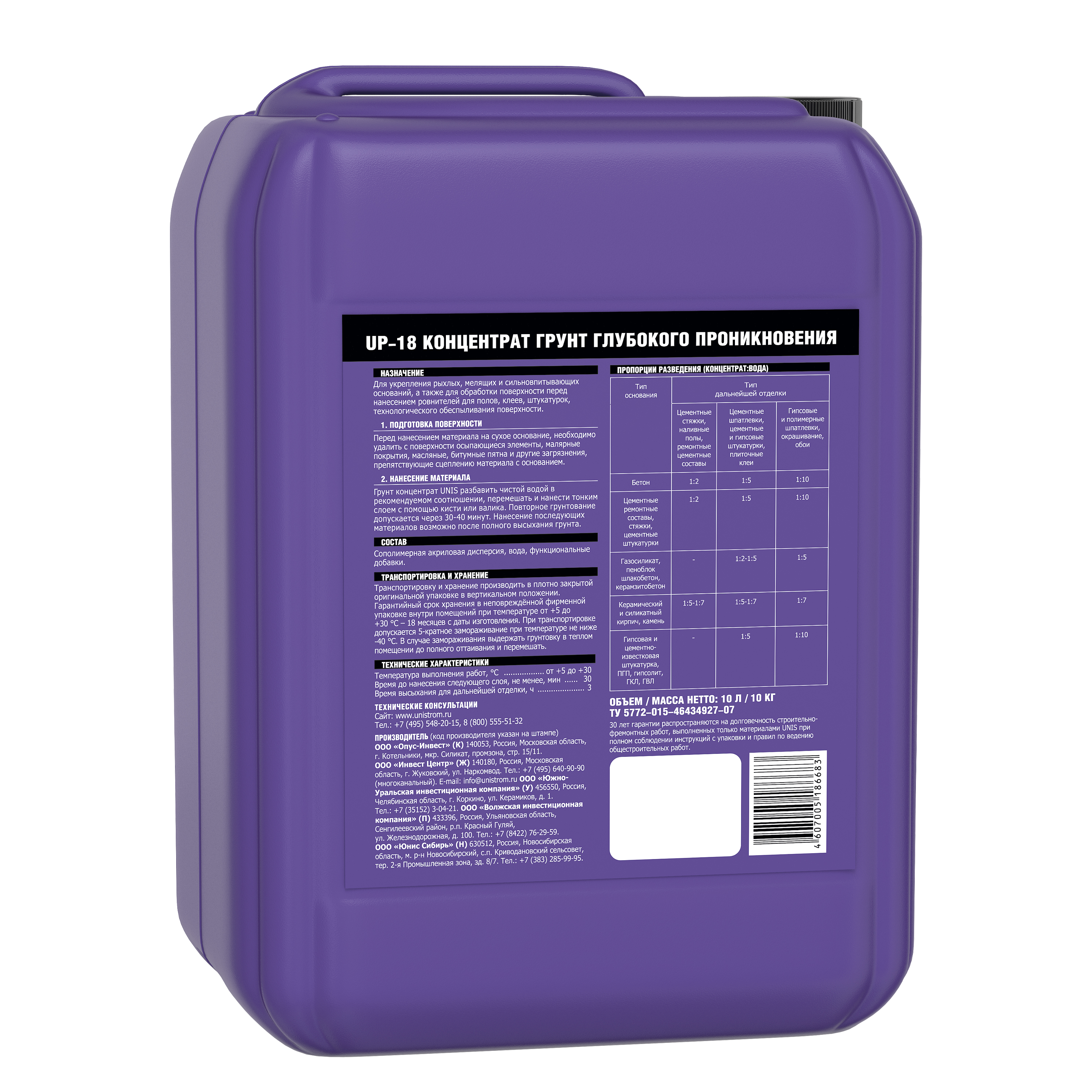 Характеристики материалов UNIS постоянно совершенствуются, поэтому рекомендуем перед использованием сверяться с актуальной информацией на упаковке.