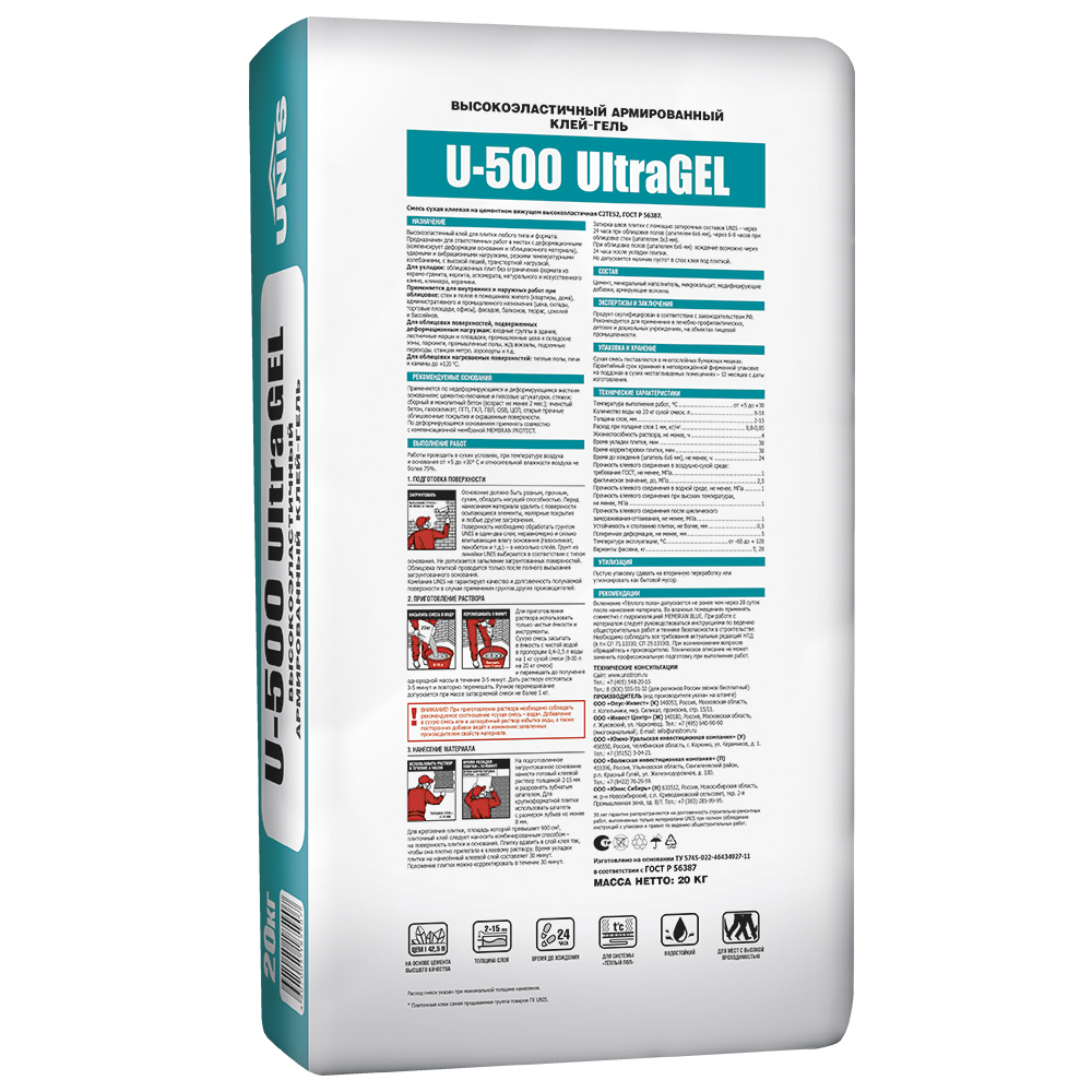 U-500 UltraGEL высокоэластичный армированный клей-гель — новая версия клея U-500 SuperFlex клей плиточный