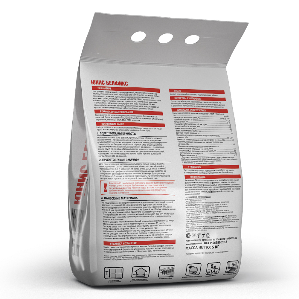 «ЮНИС БЕЛФИКС» рекомендуется для сложных задач: укладки поверх старой плитки, применения в системе «Тёплый пол», облицовки резервуаров для воды (бассейны). Может применяться в качестве затирки для плиточных швов и для создания художественно- декоративных эффектов (панно, рельефы и т.п.).