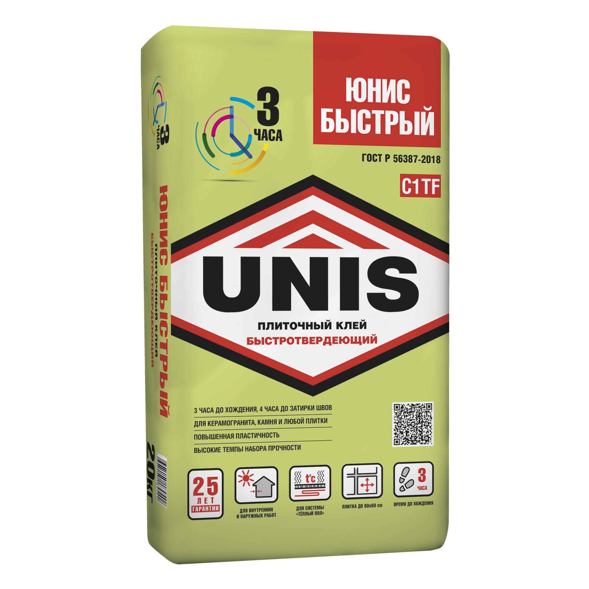 «ЮНИС БЫСТРЫЙ» рекомендуется для сложных задач: для системы «Тёплый пол», для крепления керамогранита на фасад, укладки поверх старой плитки («плитка на плитку»), укладка плитки на цементную гидроизоляцию.