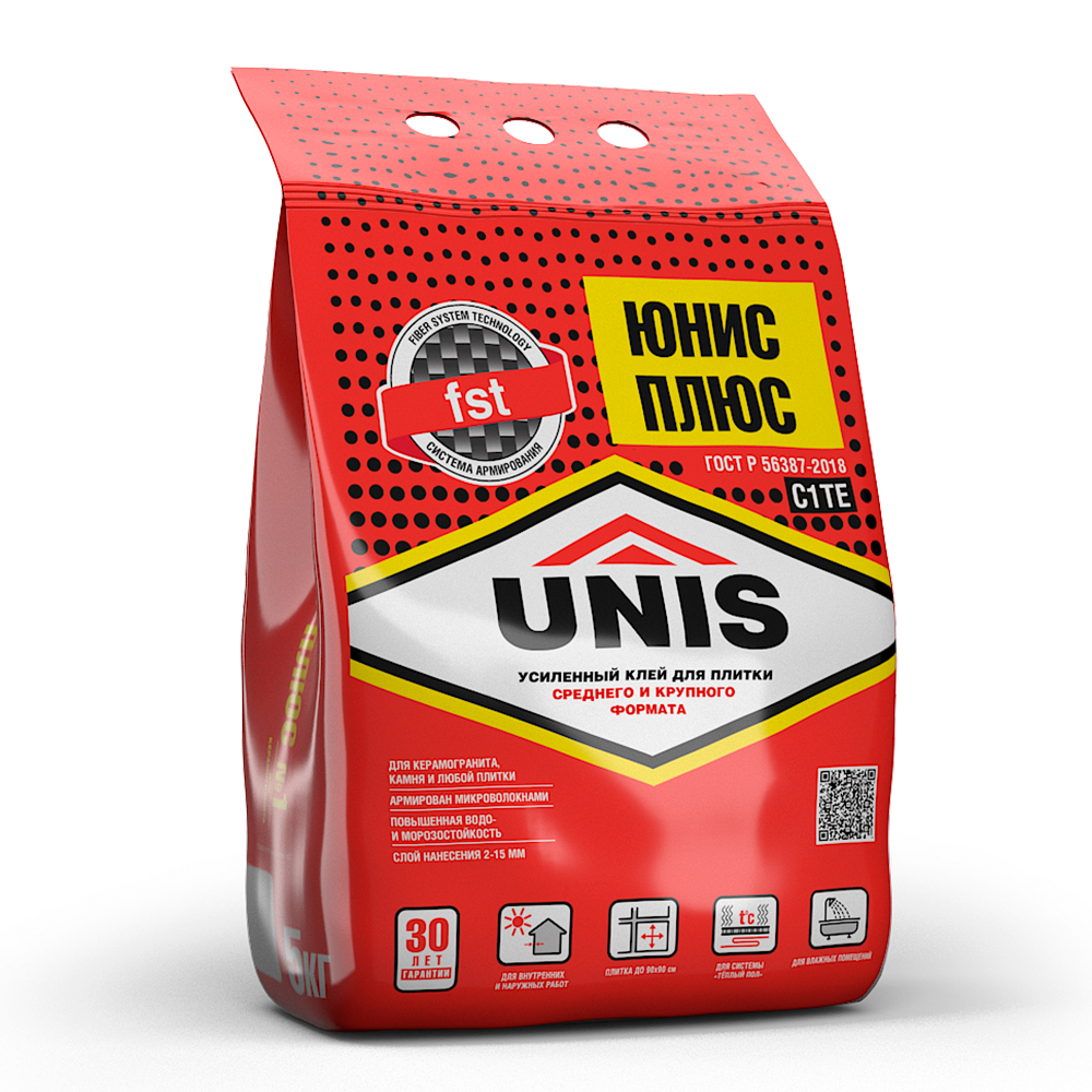 «ЮНИС ПЛЮС» рекомендуется для сложных задач: для системы «Тёплый пол», для крепления керамогранита на фасад, укладки поверх старой плитки («плитка на плитку»).