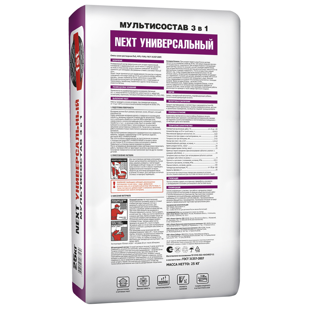 Многофункциональный состав 3 в 1 для приклеивания плитки, выравнивания, ремонта и укладки облегченных блоков