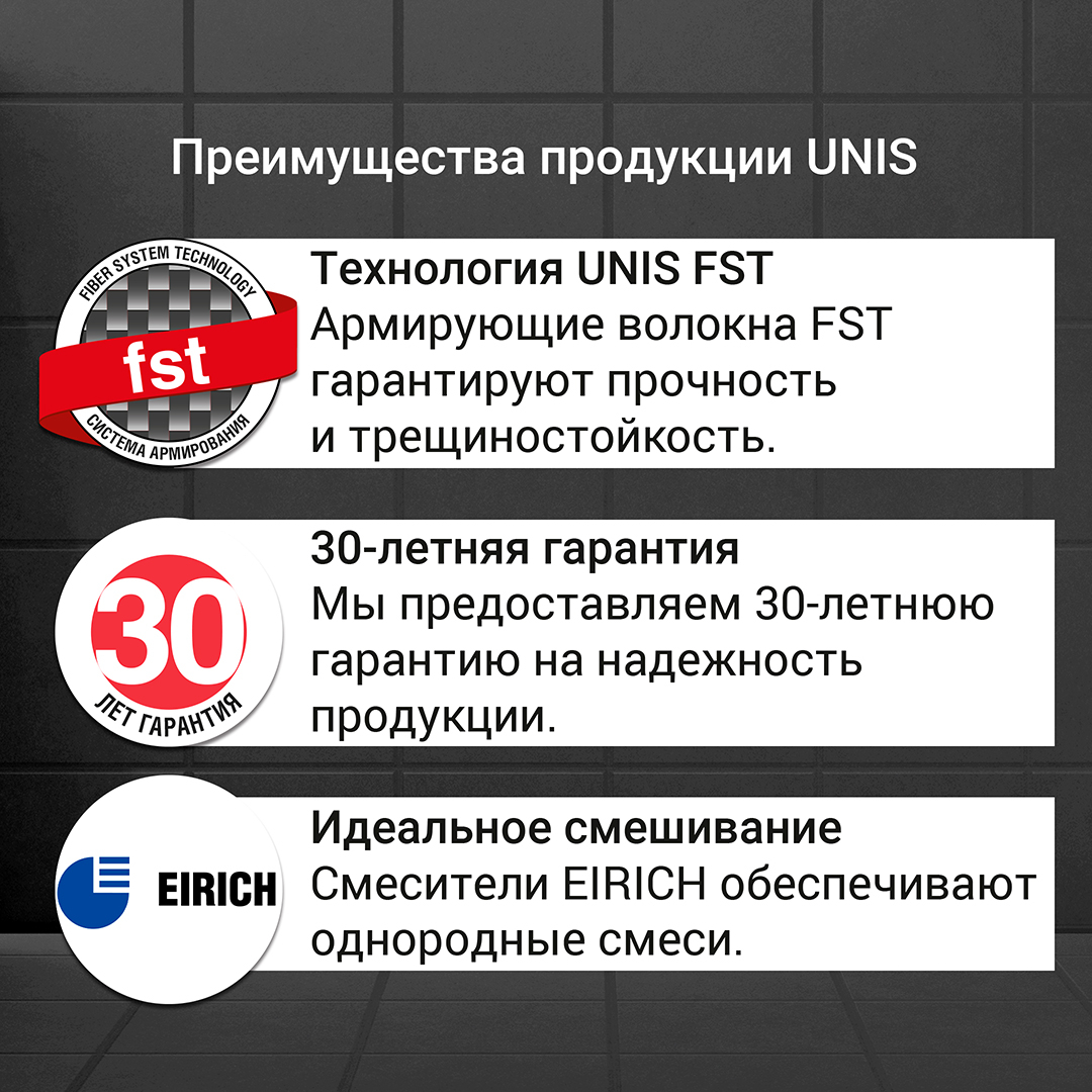 Характеристики материалов UNIS постоянно совершенствуются, поэтому рекомендуем перед использованием сверяться с актуальной информацией на упаковке.
