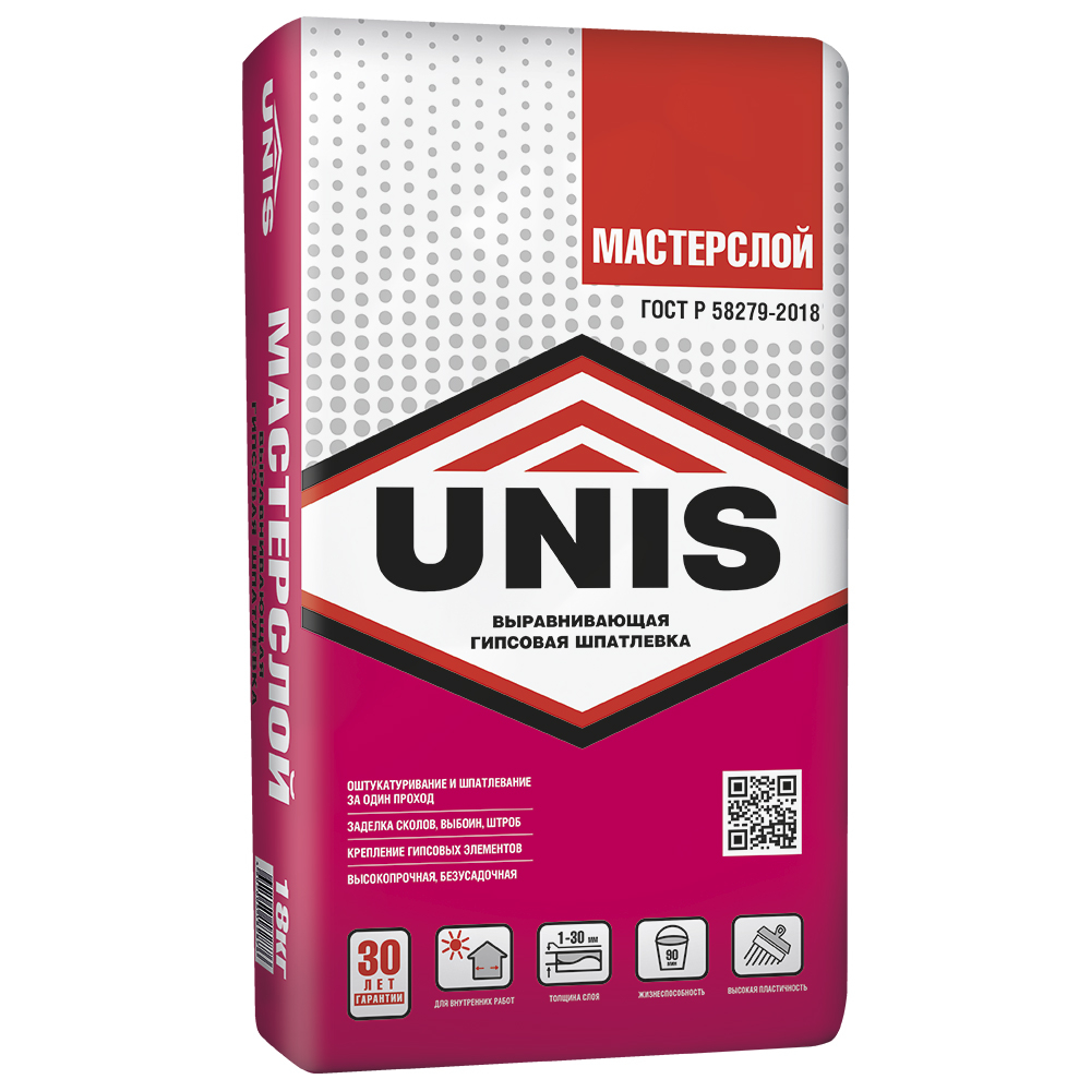 Шпатлёвка на гипсовой основе для толстослойного выравнивания поверхностей стен и потолков (слоем от 1 до 30 мм), под последующую отделку; для заделки выбоин, трещин, раковин, швов (слоем до 50 мм) в гипсокартоне и гипсоволокнистых листах (ГКЛ, ГВЛ), пазогребневых плитах (ПГП), без армирующей ленты. Допускается крепление гипсовых элементов облицовки и лепнины. Применяется внутри отапливаемых помещений с нормальной влажностью.