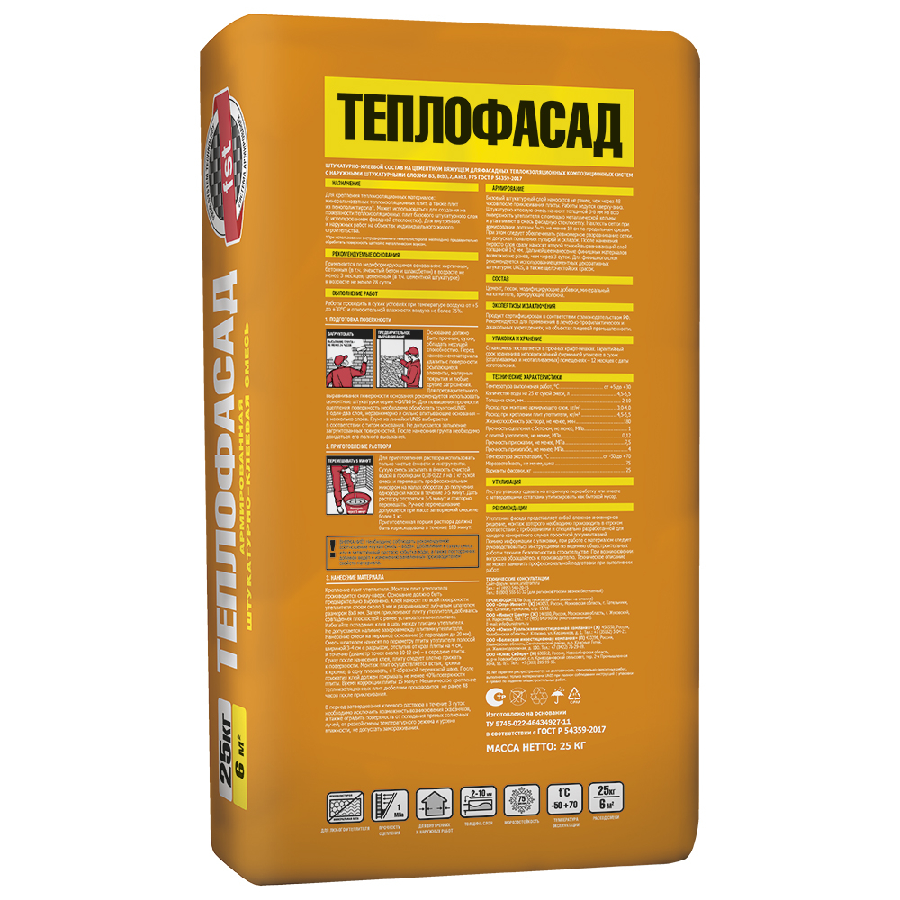 Клей для монтажа теплоизоляции (МВП, ППС) и создания базового штукатурного слоя