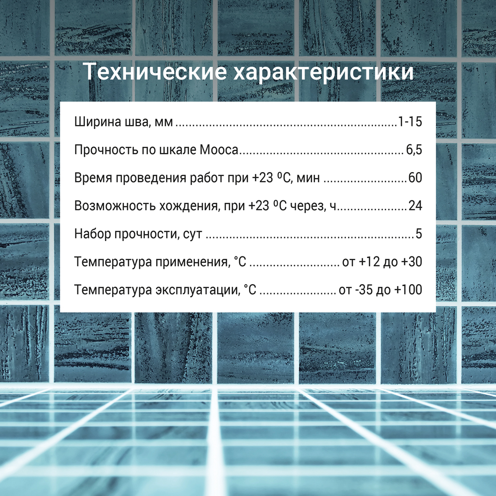 Подходит для заполнения швов плиточной облицовки и укладки любого типа плитки и мозаики. Предназначен для эксплуатации на полах и стенах в жилых, общественных и производственных помещениях, а также снаружи помещений. Особенно рекомендуется для отделки влажных зон, хамамов, бассейнов, кухонь, пищевых производств и ресторанов, любых лечебных учреждений, и помещений с высокой проходимостью. Также рекомендуется использовать в зонах, подверженных воздействию химически агрессивных веществ. Подходит для системы «Теплый пол».