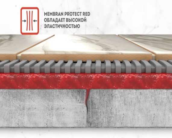Нами была создан и испытан уникальный состав UNIS MEMBRAN PROTECT, который представляет собой готовую к применению компенсационную полимерную мембрану под плиточную облицовку.